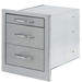 The wide 3-Drawer storage bin measures approximately 15 in. W and 17 in. tall, giving you ample room for storage as well as several ways to organize your grill tools. Durable, 1-piece construction handles dress the face of each drawer for easy use. Constructed of 430-Grade Stainless Steel.